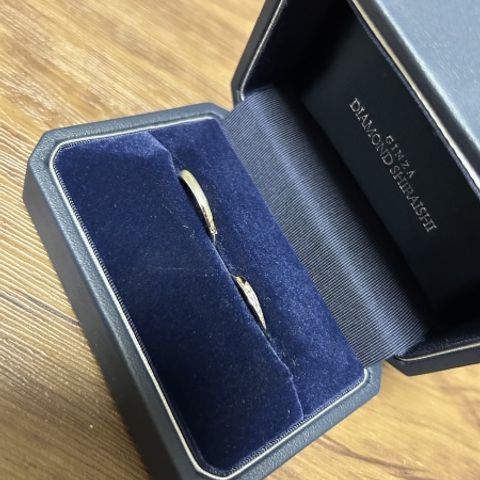 結婚指輪といえばプラチナ!のイメージが強かったわたし達にとってぴったりでした。 ダイヤの輝きを顕微鏡で見せていただいたとき美しいカットに感動しました!実際につけてみてもキラキラとしていて とても美しいです。ずっと見てしまいます。男性用もツヤありですが上品で普段からつけていても違和感なく2人とも満足してます!
