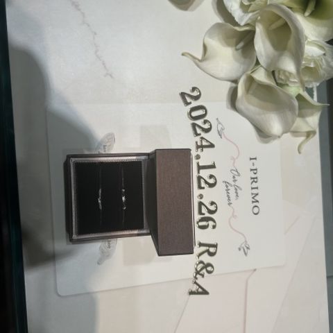 担当スタッフさんと、私たち2人で考えたオリジナル指輪です!!あえて、ひし形加工を片面だけにして、ダイヤを追加して華やかになり本当にお気に入りです!!実際に指輪を見た時、想像以上の出来上がりで、自分たちがこれからずっとつけたいと思う指輪だったので感動しました!!