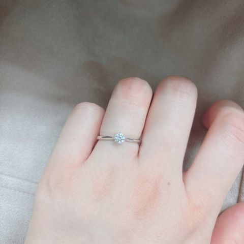 シンプルだけど存在感のあるデザインに惹かれました。ダイヤがたくさんついていたり、形も様々なデザインがある中で、一粒のダイヤが乗っているシンプルなデザインが自分の指に合っていてとても気に入っています!!