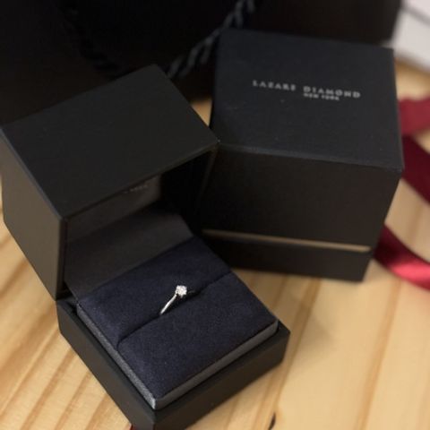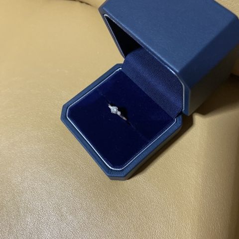 プロポーズする際にサプライズでと考えていたのでサイズが分からないままでしたが、こちらはサイズがアジャスタブルのものを土台にしているので柔軟に対応できた。 ダイヤモンドも輝きがブライトで、霞むことなくつけられる