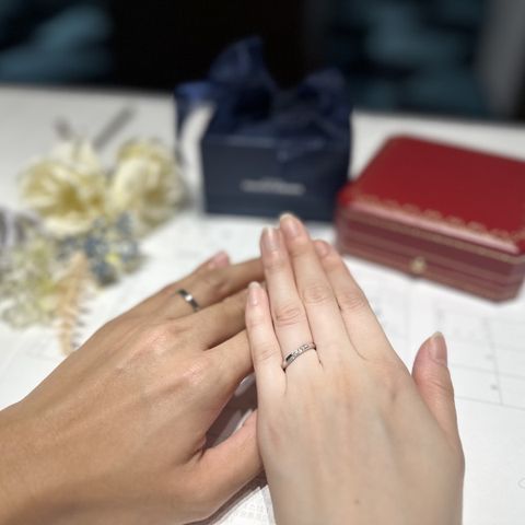 つけていてテンションが上がる指輪を探していたので、ハーフエタニティを目当てに行きました。ハーフエタニティでも数種類ありましたが、職場でつけても嫌味にならない、細身のハーフエタニティがとても気に入りました。