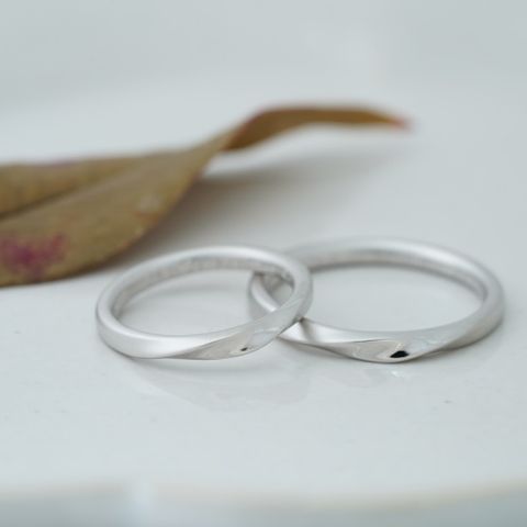 微妙なうねり具合が指にとてもフィットし、本当に着け心地がよいです。旦那さんの指輪とペアデザインで、女性用のダイヤの部分だけツヤ消し加工してもらい、より一層ペア感がでたところがとてもお気に入りなところです。