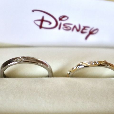 お互い好きなディズニーで、更に好きな作品の中の美女と野獣の指輪が複数あった中一番しっくりきた物を選びました。 内側に美女と野獣のシルエットや、デザイナーさんとイニシャルや日付のフォント等のデザインを考え刻印しました。