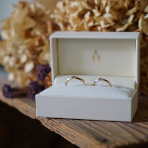 毎日つけていられる様シンプルかつ、個性のあるデザインにして頂きました!色味はピンクゴールドを選択したのですが、発色が良く2人のお気に入りです!着け心地も良く、指ざわりが滑らかなので、付け外しが多い方も安心だと思います!刻印もデザインし入れていただいたのですが、自分たちの曖昧なイメージをお伝えしたのですが、最高のデザインを提供して下さり、親身に寄り添う接客をして下さりました!