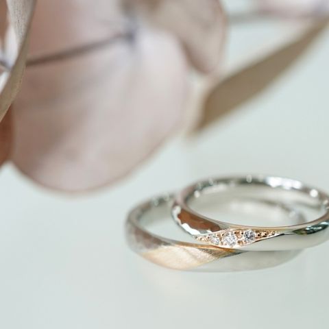 自分たちのこだわりをつめこんだ指輪になり大満足しています。 新郎新婦それぞれの好みに合わせて違いを出しつつも、ペア感を残せたのでよかったです。 ワンポイントでピンクゴールドを入れたことで、他では手に入らない特別なものになりました。