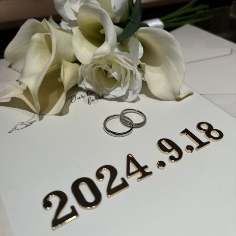 指輪のデザインに関しては実際のデザインの入った指輪の中からいくつか選び、2人に合いそうな物を抽出していきました。そこから各々の好きなテイスト、加工を加え、日付や名前を刻印していきました。入籍指輪もシンプルで安価な指輪を作っていただき、結婚指輪の参考になりました!