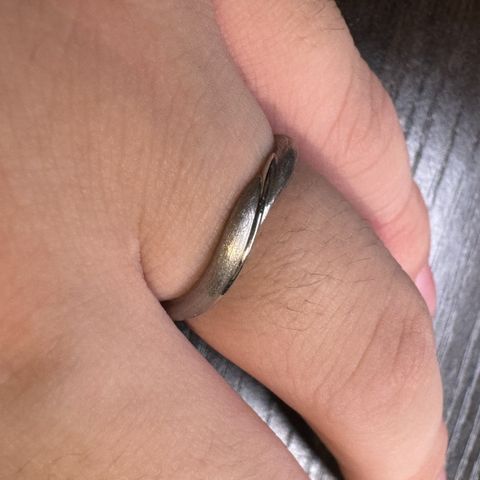 シンプルなデザインが好きでこの指輪を選びましたが、 リングにねじりが入っていてシンプルすぎないところも良かったです。ねじれの部分は光の当たり方によって、明るく輝く部分と陰になり黒っぽく見える部分に別れて見え方が変わるので、飽きがこないです。