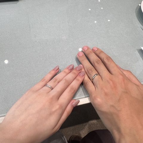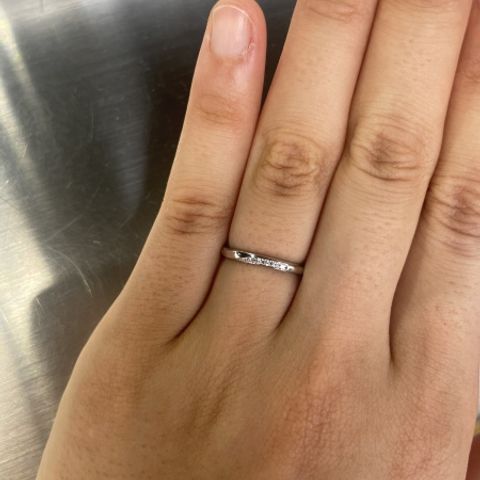 骨格診断をして頂き、この指輪が診断結果で出ました。付けてみると、指馴染みが良くて一目惚れしました。女性の指輪は、程よいダイヤモンドで日常的に身につけることができるなと思います。男性の指輪はマット加工ができるので、いいなと思いました。