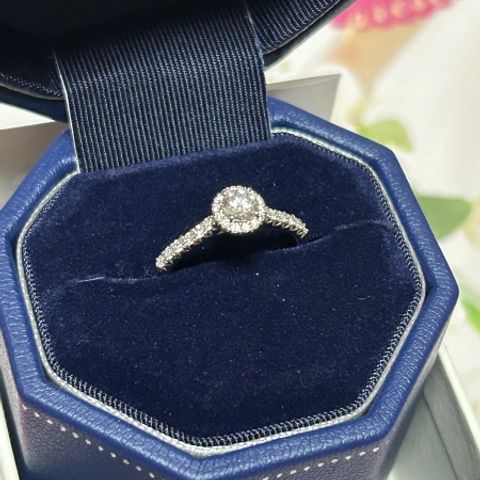 指輪のおすすめポイントは、ダイヤのサイズのわりに大きくダイヤが見えるところです。ダイヤの周りも、多くの輝きがあり、つけていて存在感のある指輪だと思いました。 他のブランドに比べて、指輪のデザインも優れているように感じられました。