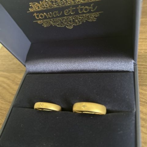 ネットで結婚指輪を探している時に見つけたゴールドの指輪。お店で実際に目にしてさらにお気に入りになりました。目立ちすぎないデザインでありながら、とても個性的なデザインに惹かれ、第一印象でそのまま購入を決めました。とてもお気に入りの指輪です。
