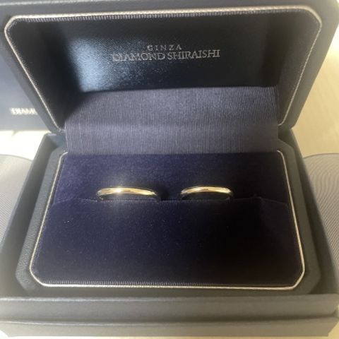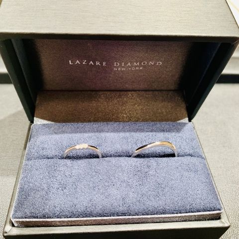 結婚指輪なので毎日着けられるデザインで、着け続けても飽きのこないものを選びました。新婦用は石なしと石ありで悩みましたが、ラザールのダイヤモンドがすごく綺麗だったので石ありにしました。仕上がりを見てみて、悩んだ末にこのデザインに決めて良かったなと思いました。