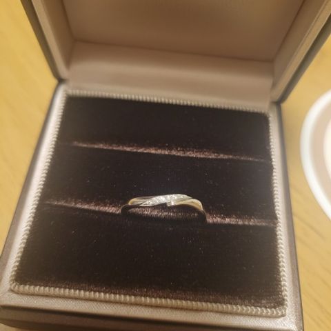 夫のハンド診断で出てきた指輪。私には細めの指輪が似合っていたが、夫は細身のものが似合わず、、色々な店舗を巡って悩んでいたところ、アイプリモでこちらを試着させていただいた。細身ではあるものの細すぎず、デザインもペア感満載で、よくみると珍しい形なのがお気に入り。