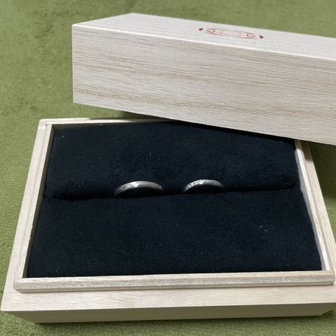 種類が色々あり悩みました。ネットで確認していたものとは違うものを購入しました。当日お店でいろいろ試着させていただき、旦那と相談して決めました。形を決めた後も加工や刻印なども色々提案いただきました。最終選んだのはシンプルなデザインで、ずっとつけられそうです。