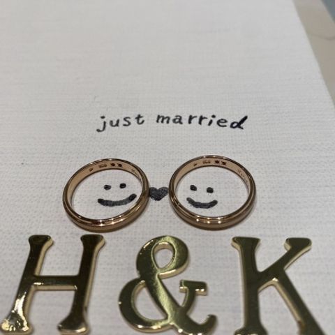 他店で様々な指輪を拝見し、各々のお店でいいなと思うデザインを組み合わせて完全オリジナルのものを作ることができました。 内側には名前と日付と併せて、自分で書いた絵をそのまま刻印できたのがいい記念になりました。