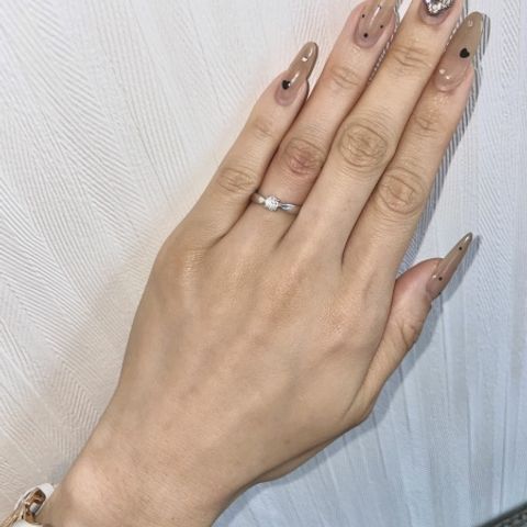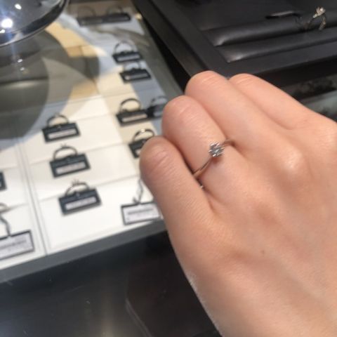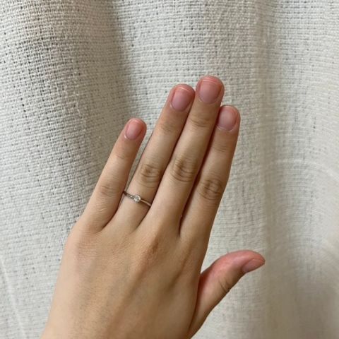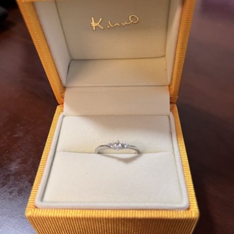 本当に着け心地良い指輪 心から気に入っています。ダイヤモンドに拘って選びました。サイズ含めて沢山見せて下さり、私の手に合う一つを選び切ることが出来ました。私側からも対面している方からもダイヤモンドの輝きを確かめることが出来るデザインも気に入っています。(シミももう有るけど、手を綺麗に見せなくちゃ)と日々の所作まで変えてくれる指輪です。