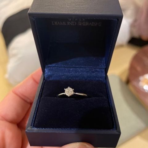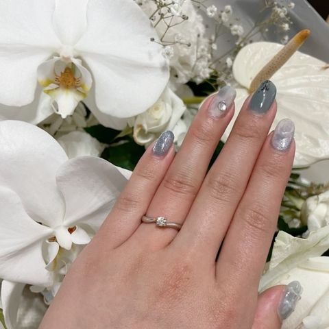 プロポーズの時には選んで貰ったダイヤを頂き、後日一緒にデザインを選びに行きました。 ダイヤモンドだけを先に選び、後日一緒にデザインを決めれるという点は良かったと思いますが、私は彼が元々良いと選んでくれてたデザイン一択でした! シンプルなデザインですが、ダイヤが一際際立ちとてもエレガントな指輪です。 結婚指輪とも重ね付けしやすいデザインです!!