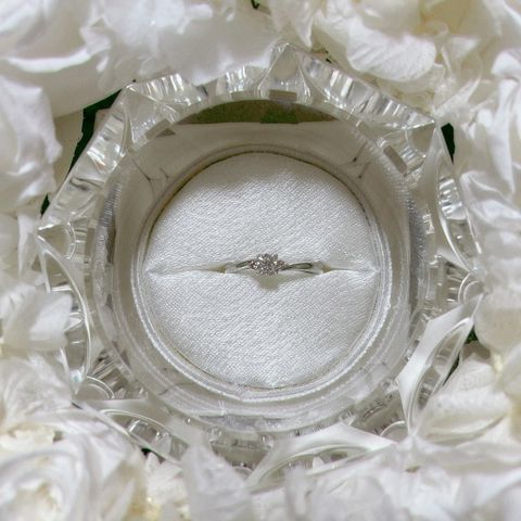 第一にダイヤモンドに重きを置きました。ダイヤモンドの中でも大きさ研磨の仕方など高いレベルのものを選んでいただき見せてもらいました。実際に自分たちの目で確認を何度も行い、2人で納得したものを選びました。指輪は長く身につけることができるようにシンプルなデザインかつ自分の個性的な部分がいれたいと思い選びました。ダイヤモンドが大きく目立つようになっているデザインですが、横から見ると花が咲いているように見えるようになっています。シンプルかつ個性を意識して選びました。