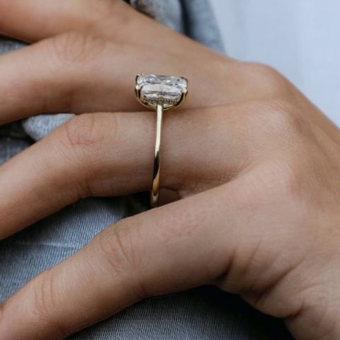 最初婚約指輪は日常でも使用したいと思っていたので、アームの高さがないものを中心に見ていましたが、ダイヤモンドが大きすぎなければ高さがあっても日常生活に支障がないなと思いこちらを選びました!結果真ん中のダイヤモンドがアームの高さがある分強調されてとっても綺麗に見えます!