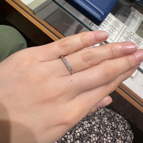 自分の指に合う指輪の診断をしてくれていくつか候補を出してもらえたので選びやすかったです。 いくつか悩んだけどこちらにして良かったです。 つけ心地もよく指になじんでいるのでこのデザインにして良かったと思います