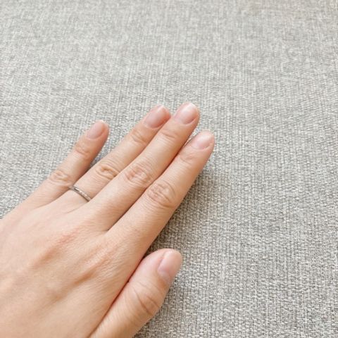 飽きのこないデザインで、どんな服装にもあわせやすいです。指の太さや長さで似合う指輪が違うと知り、勉強になりました。ちょっと斜めのデザインになっているところも気に入っています。ながく使っていくことで、結婚生活をこの指輪に刻んでいきたいです。