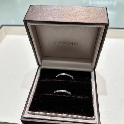 指輪とかは特につけたことがない私でしたが 沢山相談させていただき幅1.5mmpt900つちめにしました 写真で拝見した時はつちめはちょっと私には似合わないかなと思いましたが試着させていただきビビッときました。 つちめも自分たちの力加減次第でデザインがガラリと変わり私たちはあまり凹凸を出さす控えめにさせていただきました。 手を動かした時に凹凸がキラキラしてとても素敵な宝物ができました。