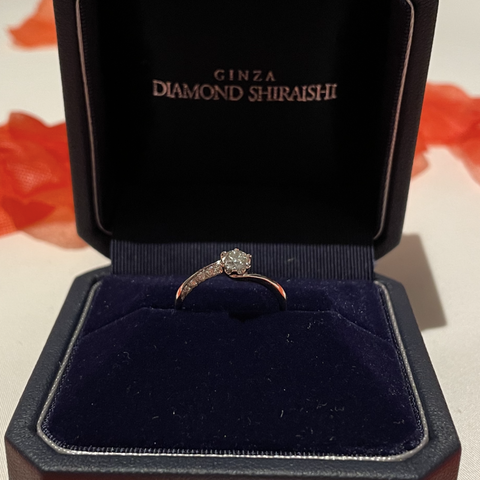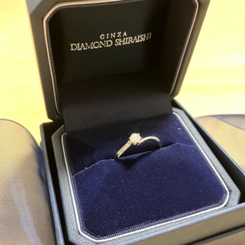 プラチナではなく、ゴールドのものが欲しかったので、一目見てこちらに決めました。 他ブランドでは、主にプラチナのものが多いので珍しいと思います。 また、普段使いできるよう少し小さめなダイヤにしましたが、銀座シライシの輝きは他とは異なり、小さくても圧倒的な存在感があります。