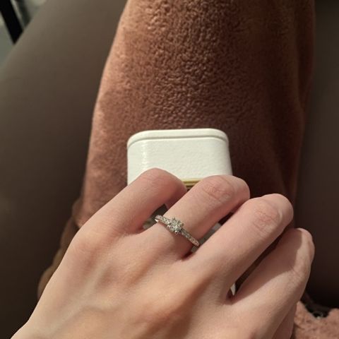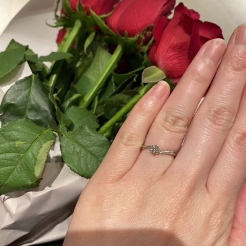 アームにもメレダイヤが付いていてキラキラ可愛らしいデザインです。 派手過ぎる事はなくちょうど良く輝きます。 ラザールダイヤモンドさんには、アームにダイヤが付いた婚約指輪が他にもいくつかありましたが、このラヴィンが私の手と指に1番しっくり来たためこちらを購入しました。 中央のダイヤに向かってアームが細くなっていくデザインも綺麗に見せてくれるポイントかなと思います。 また、私は婚約指輪を普段使いしたかったので、石座がアームにしっかり付いたデザインなのも凄く気に入っています。(なんとなく丈夫そうな気がするので笑)