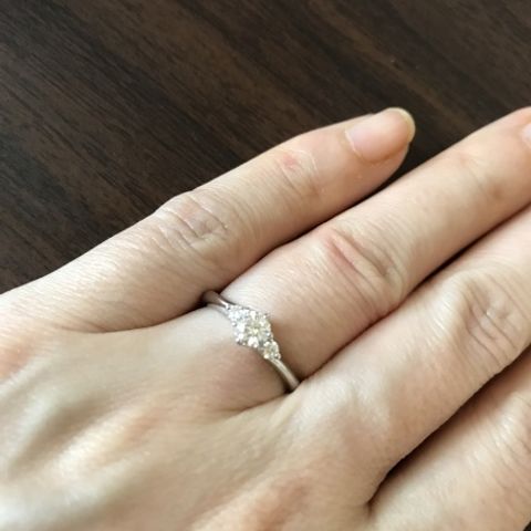 シンプルで日常でも使いやすいデザインの指輪を探していました!この指輪はダイヤも大きすぎず、でもしっかり存在感があって長年使えると思ったのでこちらに決めました。結婚指輪もシンプルだったので相性も良く、二つ重ねて付けるととても可愛いです。