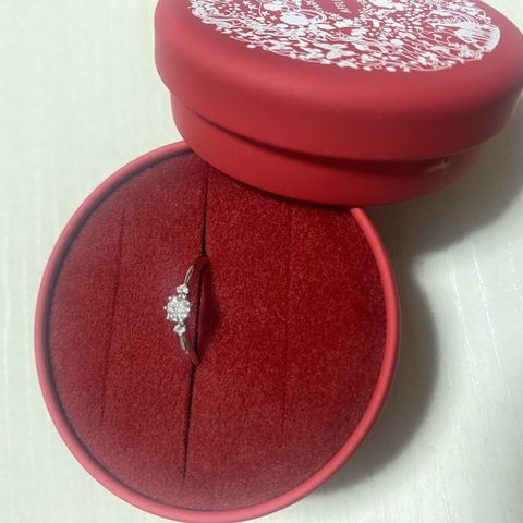 指輪のデザインはとても可愛く、エレガントな要素もありとても気に入っております。指輪の形も少しウェーブがかかっていて指馴染みがよく一目惚れでした。こんな素敵な指輪に出会えて、非常に嬉しく思い大事にします。