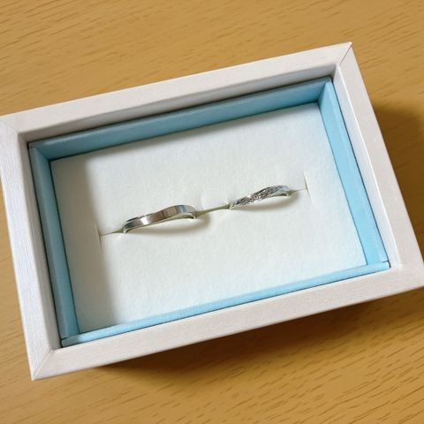 結婚指輪なので、シンプルで長くつけられる飽きのこないデザインにしました。きらきらが好きなためわたしは一つダイヤモンドを入れてもらいました。婚約指輪と重ねてつけても、お互いが引き立ち合いとても素敵です。