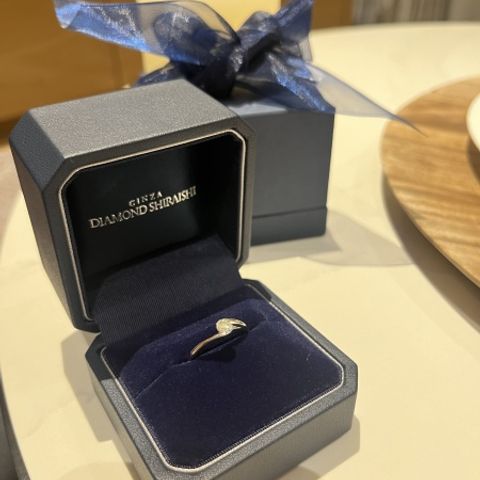 かわいらしいデザインで、ダイヤモンドが際立って見えます。ダイヤモンド自体も、どんな角度から見てもキラキラ輝いていて、カラッと数にとらわれない品質に感じました。シンプルなデザインが、相手に対しての想いを表してくれました。