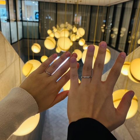自分用はひとめぼれしたデザイン、夫も気になったデザインをお互い選びました。スタッフの方にアドバイスを頂きながら、デザインが異なっていてもペア感のある指輪になったと思います。 また、オーダーなのでつけ心地も種類がたくさんあるなかから選べるので、毎日つけていても違和感なく過ごすことが出来ました。