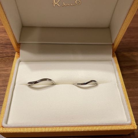 ウェーブタイプの指輪です。 ストレートタイプの指輪より指や手の形に合っていてフィット感もありました。 デザインはもともと1石の小さなダイヤが付いていましたが、もっとシンプルなものが欲しくてダイヤなしのシンプルなリングにしてもらいました。 素材はプラチナです。