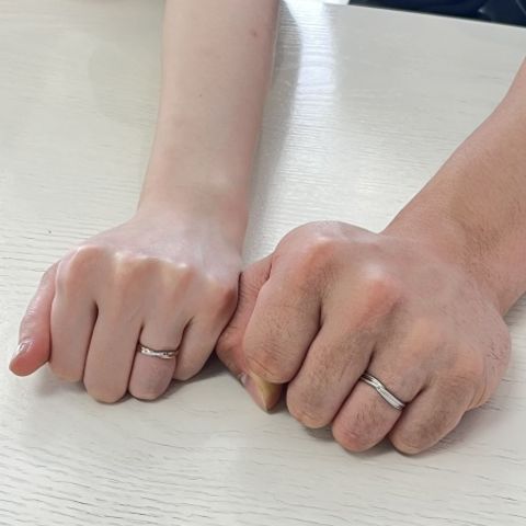 ずっと着け続けるものなので、鍛造製法という丈夫で長く使い続けられる製法に惹かれて選びました。夫婦とも同じデザインにしたかったので、好きなデザインを自分たちで考えることができ、オリジナルのものを作れるところが良かったです。