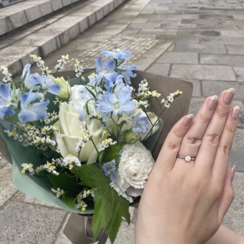 元々、ネットでデザインを見ていて「これだ‼︎」と気になるものをピックアップしていました。その中で実際に付けてみて指の形に合ってそうなものを選びました。価格もリングを選んだ決め手になりました。接客も丁寧にしていただいて、楽しくて満足度が高かったです。