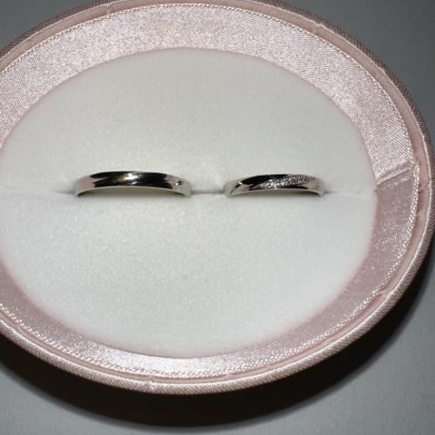 実物は写真よりも柔らかい光で、普段使いしやすいところが気に入っています。つけ心地も滑らかで、長時間つけていても違和感がありません。ケースが可愛くて、開けた瞬間に気持ちが上がるのもポイントでしたふたりで選んで本当によかったと思えるリングです。