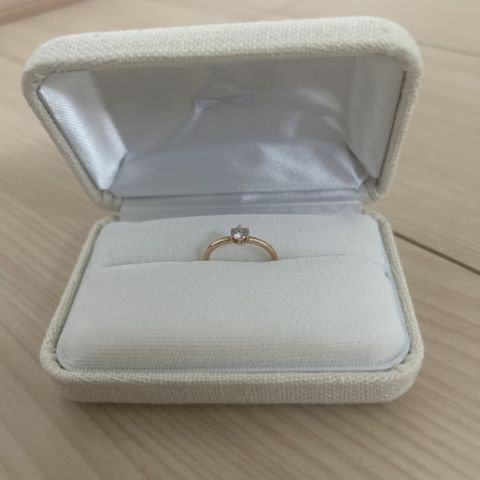 婚約指輪ですが、日常的に付けられるように結婚指輪用として作られているものを選びました。細さ含め控えめなデザインなので今後購入する結婚指輪と重ね付けも可能だと思います。 元々指輪をするのが得意ではないですが細いので馴染みがよく違和感がないです。