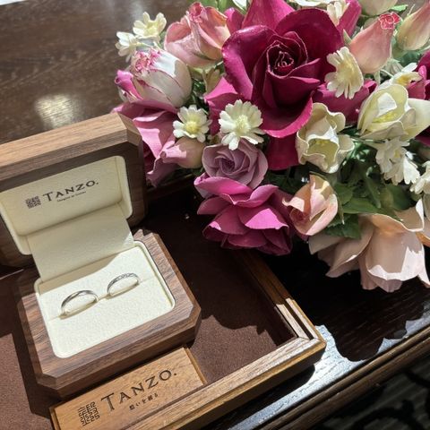 主人(アメリカ人)が、和テイストの結婚指輪を希望していた中で、tanzo に決めました。同じデザインですが、加工•カラーをそれぞれの好みで選ぶことができたので、仕上がりはそれぞれ異なるオリジナルな指輪になりました。