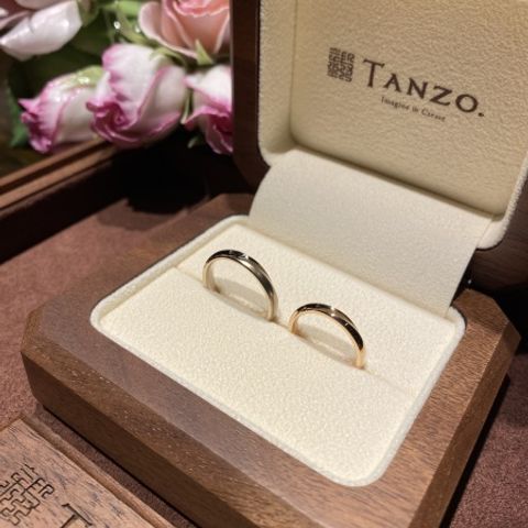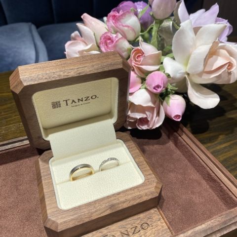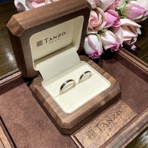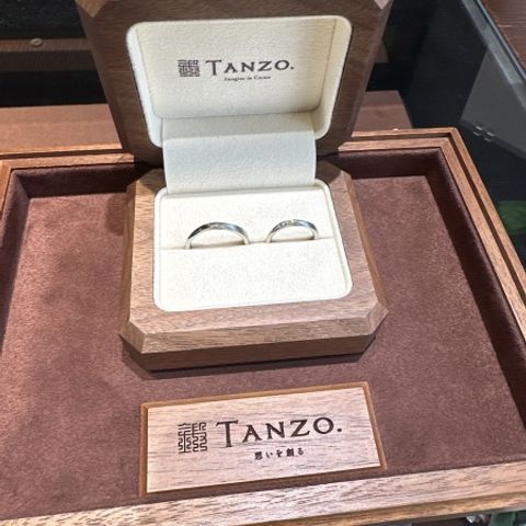 自分達でお互いに好きなデザインでオーダー出来たので、2人とも妥協することなく大変満足のいくものになりました!!今職人さん作ってくれてるんかなぁ、完成どんな感じかなぁと2人でワクワクしながら話をしたりと待ち遠しかったです。完成してケースを開けて初めて指輪を見た時は輝きがすごくて感動しました。TANZOさんで購入できて良かったなと思いました。