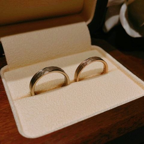 旦那と私で指輪のデザインにそれぞれこだわりが強くあり、お互い妥協せずにオーダーができました。色や加工も違ったポイントを盛り込めたのが最高です! 鍛造製法でここまで自分のこだわりを詰め込めるメーカーさんは探してもなかなか無かったので、大変満足しております!