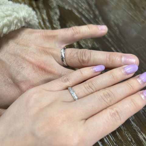 お互いの今までの指輪を生かしてくれました。 思い入れが大きくなり感動です。 デザインも自由に選ぶことができて、製作から完成まで楽しい期間でした。 また、刻印の自由度も素晴らしく、遊び心をくすぐられ、 満足のいくものになりました。