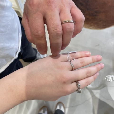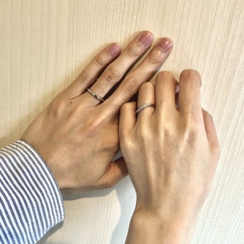 パーソナルハンド診断をしていただき、私がウェーブタイプ、彼がストレートタイプが似合うとのこと。なので、形はストレートだけど、デザインがウェーブのような指輪を選ばせていただきました。二人に似合う指輪を選ぶことができ、とても満足しております。