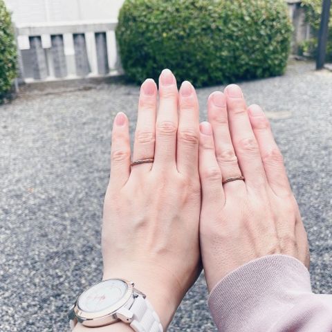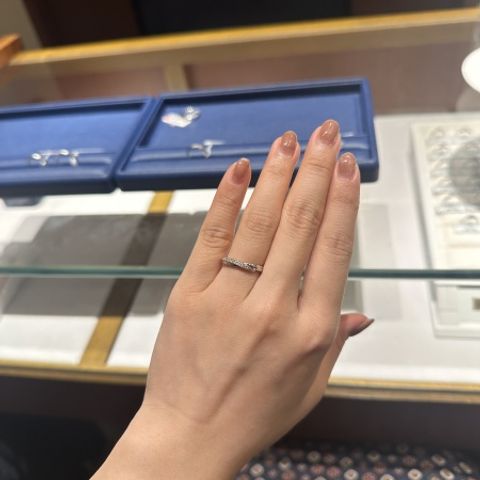 少し贅沢で、でも普段使いしやすい指輪を探していました。婚約指輪がシンプルなものなので、結婚指輪はキラキラしたものが欲しいと思っていました。 私も彼もカジュアルな服装をすることが多いので、違和感なく着けられて、希望も叶えられた指輪選びができました。 一店舗目だったので様子見する予定でしたが、試着で雰囲気も着け心地も良い指輪が絞られていく過程で、これが最適解だね、となり購入に至りました。
