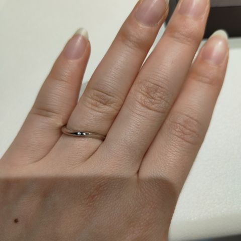 デザインが可愛く、シンプルで、着け心地がストレスフリーです! 主張しすぎないデザインなので、ずっと着けていられる印象です。長く着ける結婚指輪としては、本当に最適だと感じています。細めのリングを購入しましたが、ゆるやかなカーブ曲線で、飽きのこないデザインでとても満足しています。