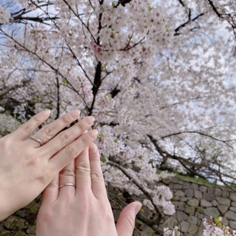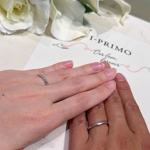 ペアリングではなく、それぞれが好きなデザインで選びましたが、とても満足しています!必ずしも同じデザインじゃなくても良いと思います♪一生着けるものなので、お互いが気に入ったものを選ぶのが一番です。ペアでなくても結構馴染みます。