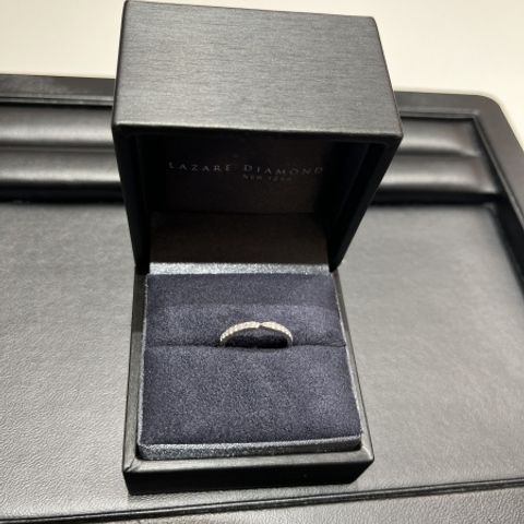 鍛造製法にこだわって探しました。 太めのハーフエタニティで、ダイヤの輝きがとても魅力的です。ゴールドとプラチナで迷いましたがやはりプラチナの方がダイヤの輝きを一層美しく見せてくれるのでおすすめです。また、重ねづけをしてもとても綺麗なデザインのため重ねづけの楽しみもあります。