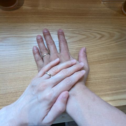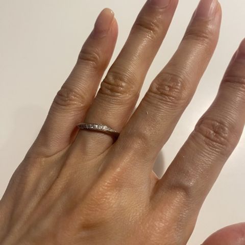 職人さんが本当に細かく傷を入れていることで光沢が角度によって変化します。指輪自体にウェーブ模様が入っているデザインを探していましたが、着用時にリングの正面を意識するのが面倒だと感じていました。こちらのリングは正面を気にする必要なく自然に光沢が変化してウェーブのデザインのように見えるデザイン性がありつつシンプルな点がポイントでした。着用感も他のリングを試着させていただいた時とは全く別物のような滑らかさがありました。この滑らかさも、リングの内側を職人さんが丁寧に磨いてフィット感を大事にしているからとのことで、指輪を対するこだわりを感じ、惹かれました。