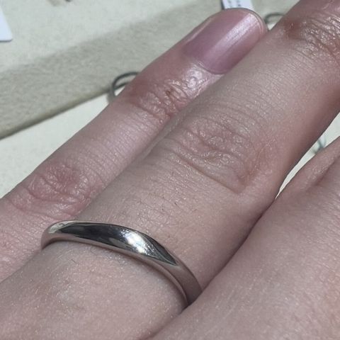 シンプルさがとても気に入りました。ただウェーブがあることで指に馴染むデザインになっていることもとてもポイントが高かったです。 そして何より付け心地がとてもよいです。普段アクセサリーをつけないため非常によかったです。
