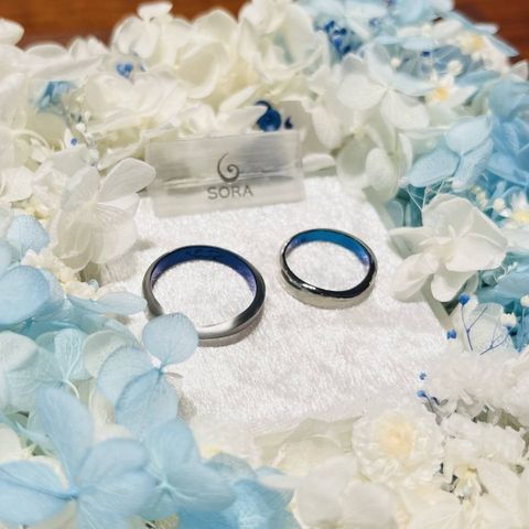 2人ともこだわりが強いので妥協して同じデザインにするのではなく、それぞれが納得できるように少しずつ異なったデザインの指輪にしました。それでも並ぶとペア感があってとてもほっこり嬉しい気持ちになりました。