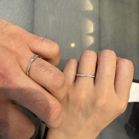 お互い再婚同士なこともあり、予算は控え目で探していました。 何件か実店舗を回りましたが理想のリングと出逢えず…ネットで検索してこちらのお店に目がとまり伺いました。 結果、価格・デザイン・素材全て満足のいく素敵なリングを見つけてセミオーダーしました。 エレガントなカーブと可愛いダイヤがキラキラで大満足です。